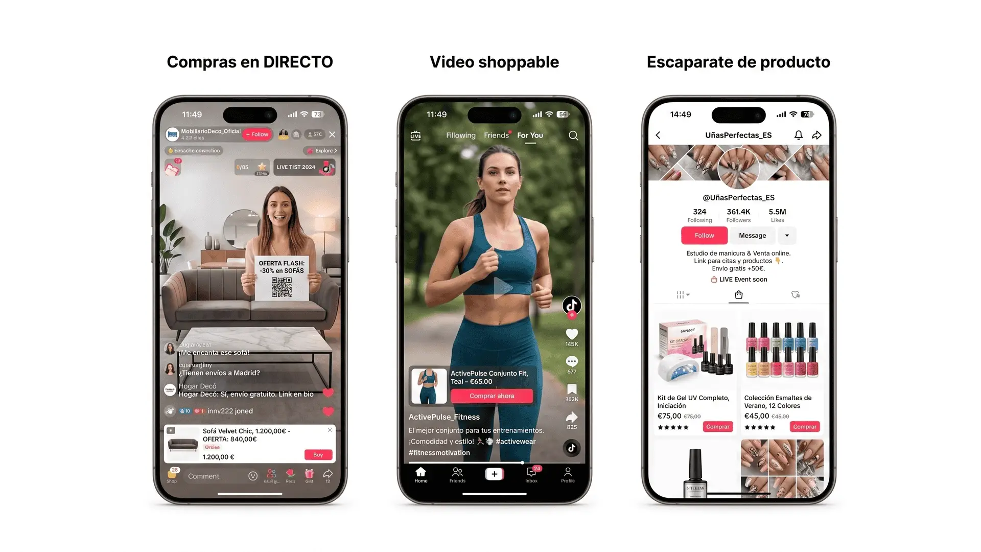 El usuario ya no necesita ver un producto, salir de la app, abrir el navegador, buscar la tienda y completar el checkout. Todo ocurre en segundos dentro de TikTok, ofreciendo una experiencia de compra móvil ultra rápida, fluida y visual.