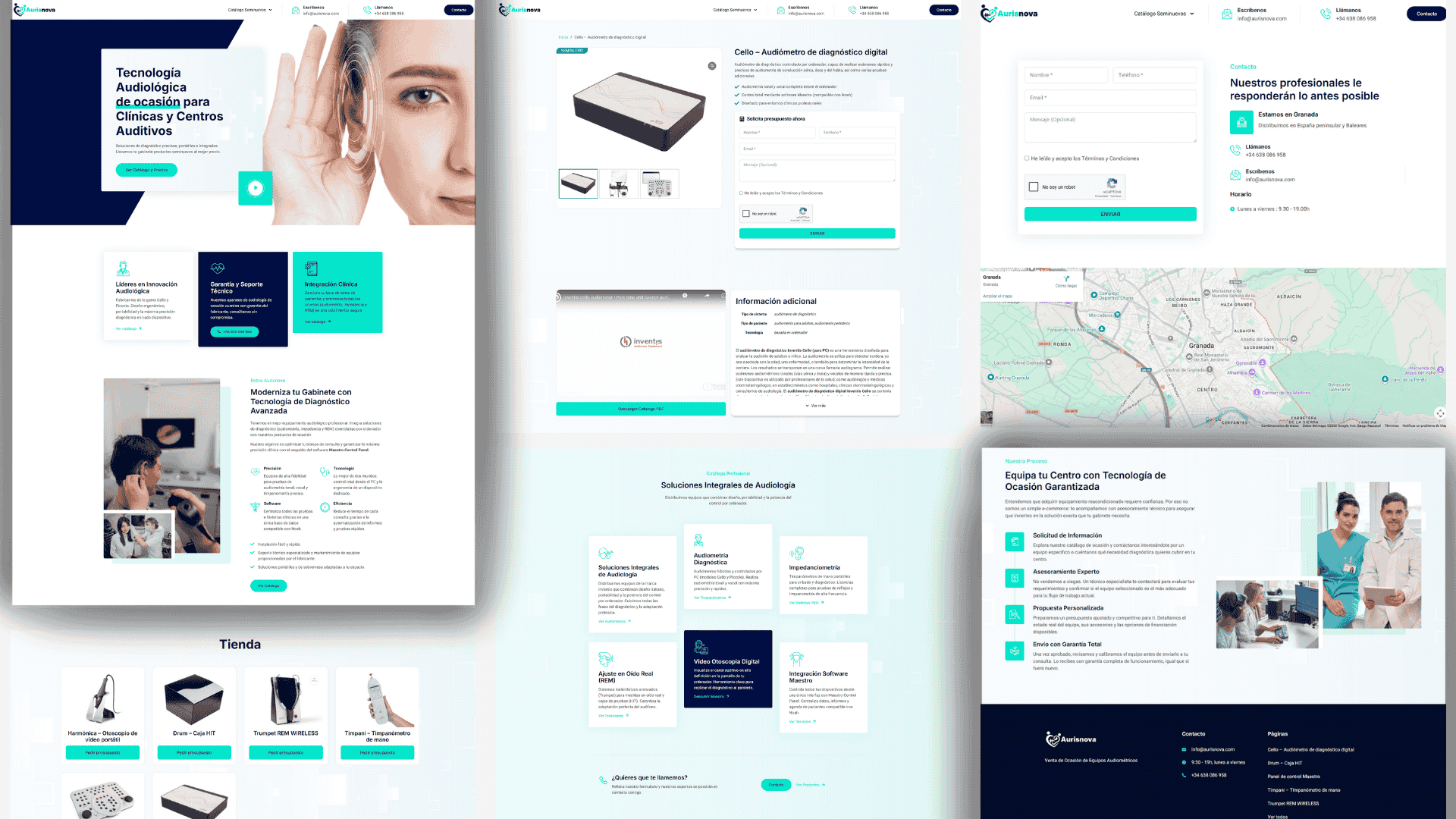 Creamos la marca Aurisnova desde la base. Desarrollamos un naming y una identidad visual limpia, clínica y moderna. El diseño transmite precisión y «novedad» (Nova), alejando cualquier connotación negativa del producto usado y posicionando a la empresa como un proveedor de soluciones tecnológicas avanzadas.