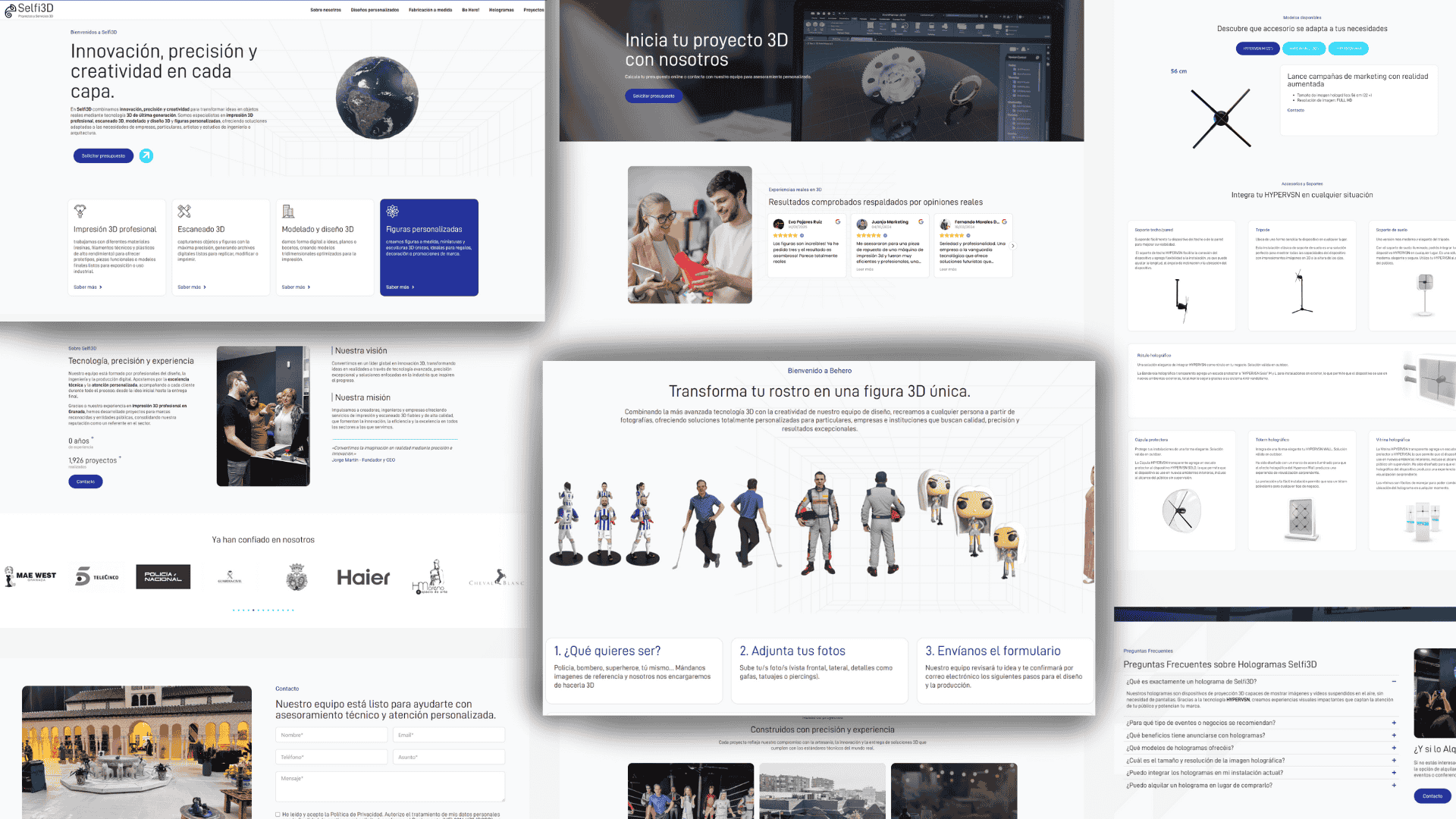 Convertimos la web de Selfi3D en un activo comercial autónomo. La nueva plataforma no solo atrae visualmente, sino que ahorra horas de gestión administrativa al cliente gracias a la automatización de presupuestos, ofreciendo una experiencia de usuario (UX) ágil e intuitiva.
